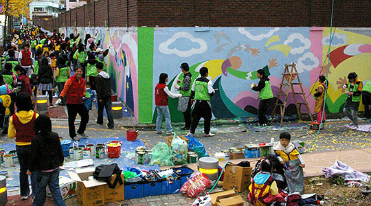 이후 2003년 벽화 그리기를 주도할 10명의 운영진을 구성해 장소를 결정하고 봉사자들의 땀을 모아오던 것이 이젠 16명의 운영진으로 성장해 전국 제일의 봉사단으로 우뚝서고 있다.