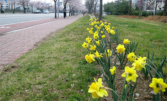 고창읍이 도로변에 노란 수선화를 심어 주민들과 관광객들에게 봄의 화사함을 선사하고 있다.