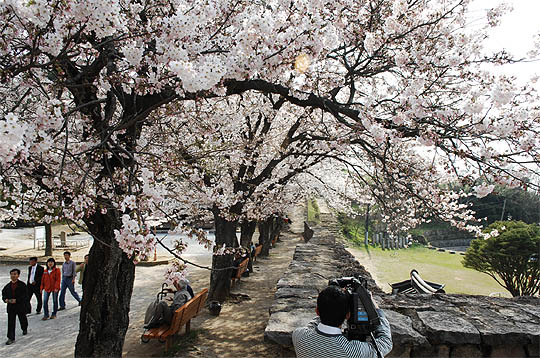 600년 가까이 고창을 지켜온 고창읍성에 벚꽃이 만발, 상춘객을 유혹하고 있다.