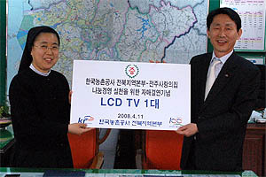 한편 농촌공사 전북본부는 이날 협약기념으로 사랑의 집에 LCD TV(32인치)1대를 기증했다.
