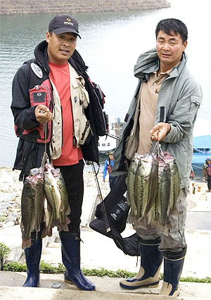 최대어상은 어른 팔길이만한 57cm 크기에다 2.9kg이 나가는 배스를 잡은 박희돈씨(경기도 광주)와 조중환씨(대구광역시 서구)에게 돌아갔다.
