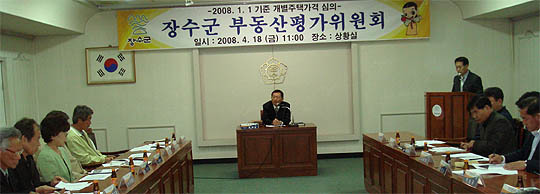 장수군은 지난 18일 2008년도 개별주택가격(안) 심의회를 개최하고 관내 개별주택 8260호에 대한 가격을 심의했다.