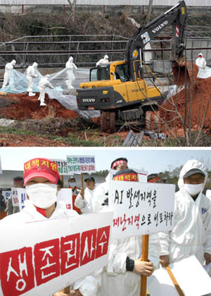 김제에서 발생한 고병원성 조류인플루엔자(AI)가 도내 뿐 아니라 전국으로 확산되며 닭·오리 사육농가를 강타하고 있다. 허술한 방역체계 등으로 급속히 확산된 AI는 농가의 피해를 눈덩이처럼 키웠고 이에 따라 피해보상을 놓고 농가의 거센 반발이 이어지고 있다. 지난 2003년과 2006년에 이어 또 다시 발생한 AI의 전북지역 실태를 종합점검해본다.