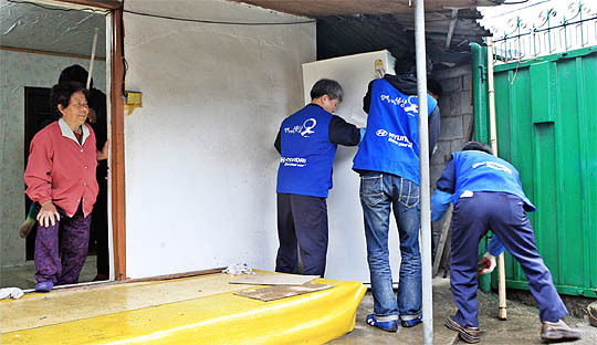 현대자동차 전주공장(공장장 김영국)은 24일부터 25일까지 이틀간 완주군내 자매결연 농촌마을 4곳에 사는 저소득 6세대를 대상으로 사랑의 집 고쳐주기 봉사활동을 벌였다.