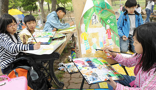27일 전주동물원에서 열린 제29회 롯데 어린이 환경 미술대회에서 참가한 학생들이 신중하게 그림을 그리고 있다. 롯데백화점 전주점에서 주관한 미술대회는 환경에 대한 소중함을 알리기 위한 주제로 열렸으며, 1500여명의 어린이와 가족들이 참가했다. 이강민(lgm19740@jjan.kr)
