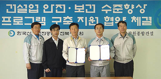 산업안전공단 전북지도원과 (유)창원종합건설이 안전·보건수준향상 프로그램 구축 지원 업무협약을 체결했다.