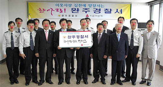 완주경찰서(서장 류선문)는 지난 25일 2층 회의실에서 사랑의열매 전북사회복지공동모금회(회장 김원배)와 함께 도내 소년소녀가정, 홀로노인 등 소외된 이웃을 돕기 위한 한사랑 나눔 캠페인 기부 약정식을 열었다.