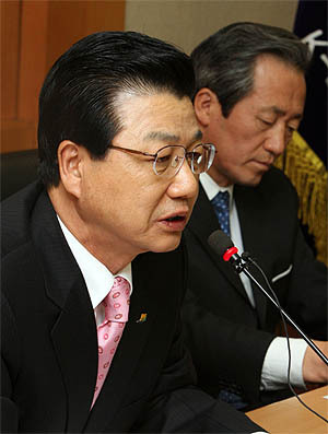 김진선 강원도지사가 28일 오전 서울 사직동 대한축구협회에서 열린 K-리그 강원도민구단 창단 발표 기자회견에서 창단발표 후 추진 배경을 설명하고 있다. (desk@jjan.kr)