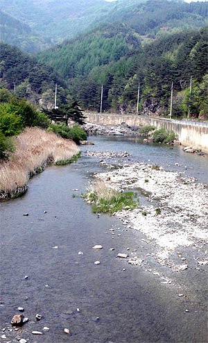 당연히 아래쪽 물속의 바위와 자갈에는 뿌연 흙탕물이 가라앉아 있었다. 간혹 다슬기가 지나간 흔적이 보일뿐 토사가 뒤덮은 하천 바닥은 감돌고기나 꺾지가 먹잇감이 될 만한 것들을 찾기 힘들었다.