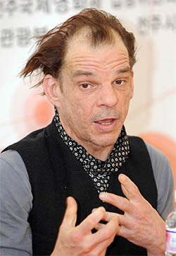 광기 어린 카리스마. '퐁네프의 연인들'로 알려진 프랑스 배우 드니 라방(46, Denis Lavant)이 전주에 왔다. 첫 한국 방문. 그는 "개인적으로 여행을 즐기지는 않지만, 영화를 통해 낯선 곳을 가고 새로운 사람을 만날 수 있어 좋다"며 크게 웃었다.