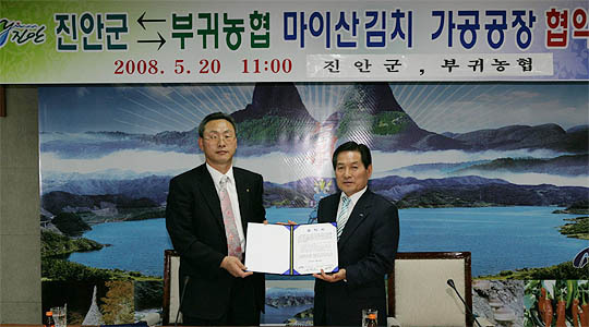 진안군(군수 송영선)과 부귀농협(조합장 정종옥)은 지난 20일 군청 상황실에서 이 같은 내용을 골자로 한 양해각서(MOU)를 체결하고 지역경제 활성화에 공동 노력하기로 의견을 같이했다.