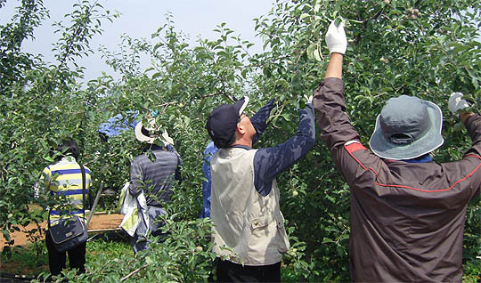 호남농업연구소 직원 50여명은 이날 마을 주민 김재철씨 과수원 6,000여평에서 사과나무 열매 솎기와 잡초제거 등의 일손을 거들고, 농가의 어려움을 직접 체험하는 농업 현장 경험을 통해 소중한 땀방울을 흘렸다.