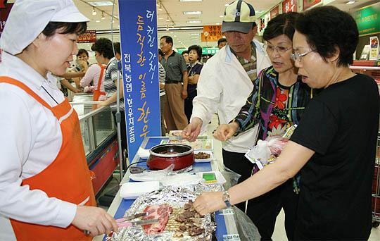 또 한우고기 소비 홍보를 위해 한우고기 구매고객에 대해 매일 400명 선착순으로 멜라민 냄비받침대를 사은품으로 증정하고, 매장 방문객을 대상으로 등심, 소 양념불고기 등 한우고기 무료 시식행사를 실시한다.
