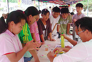 이가운데 학생과 학부모, 교사 등이 함께 어우러진 창의성 부스 체험이 눈길을 모았다. 아로마 향초를 비롯해 호루라기 피리 만들기, 광섬유 만들기, 대나무 단소 만들기 등 24개 창의 부스가 학생들의 호기심을 자극했다.