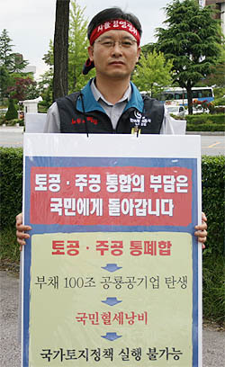 [토·주공 통합 혁신도시 유치] 주공·토공 통폐합 1인 시위