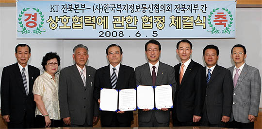 KT전북본부(본부장 명성호)와 (사)한국복지정보통신협의회(KWIC) 전북지부(지부장 박윤곤)는 최근 상호협력에 관현 협정을 체결했다.
