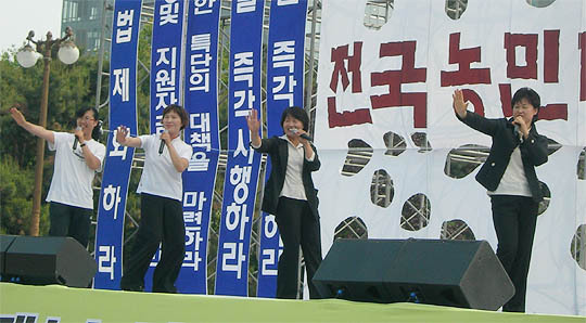 "한 칠레 협상 이후 너무 힘들어 진이 빠져 있었습니다. 공연을 하면서 농민들이 외롭게 흘리는 눈물을 우리 국민들이 닦아주고 있구나 하는 생각에 눈시울이 뜨거워졌습니다. 어린 학생들에게는 미안한 마음이었지요."