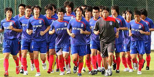 2010 남아공 월드컵 아시아지역 3차예선 투르크메니스탄 원정을 앞둔 태극전사들이 10일 오전(한국시간) 중간 전지훈련지인 터키 이스탄불 갈라타사라이 전용 훈련장에서 본격적인 전술 훈련에 앞서 러닝으로 몸을 풀고 있다.