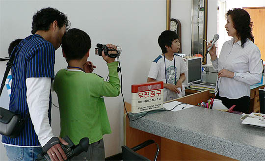 장수 천천초 학생이 우체국에서 미디어 영상을 촬영하고 있다. (desk@jjan.kr)