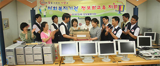 한전 전북지사(지사장 고병춘)가 11일 사회복지시설 정보화 지원사업의 일환으로 전주 청소년문화의 집에 컴퓨터 20대와 프린터 5대를 전달했다.