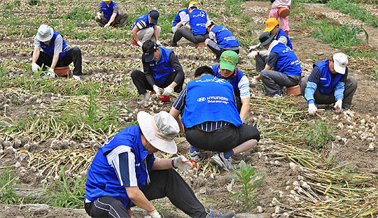 특히 마늘과 양파 수확철을 맞아 최근 잦은 비로 어려움을 겪고 있다는 소식을 접한 현대차 김영국 공장장과 60여명의 직원들은 손수 발벗고 나서 마늘 캐기와 양파 캐기, 양파 망 담기 작업 등을 하면서 값진 구슬땀을 흘렸다.