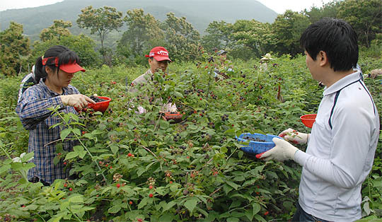 이날 봉사활동은 이마을 장원태씨 복분자 밭에서 일손을 지원하고 아울러 70㎏의 복분자도 구입했다.