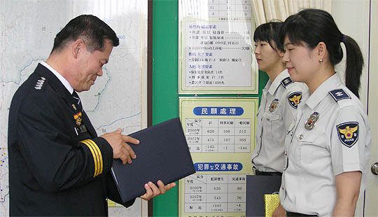 이 서장은 "이제는 여자경찰관이 경찰의 꽃이 아닌 동료로서 자리잡았다"며 "앞으로 여자경찰관을 요구하는 분야가 점점 많아지는 만큼 모든 업무의 중심에 설 수 있도록 최선을 다해달라"고 말했다.
