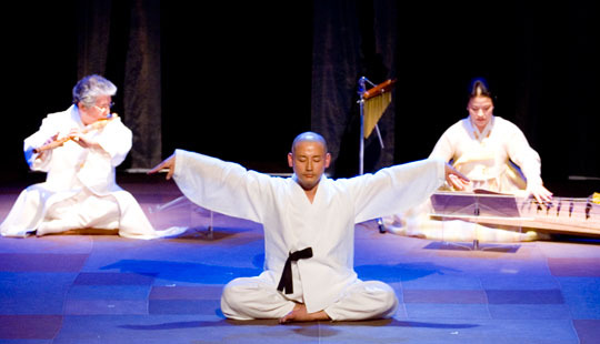 첫번째 무대는 '중용의 소리 - 선차'. 정악곡을 연속 연주형태로 재구성한 이 곡에선 중용의 정신을 담은 대금의 편안한 연주를 선차와 함께 만나볼 수 있다. 대금이 부드러운 낮은 음역과 시원하게 뚫리는 높은 음역을 자유자재로 넘나드는 악기이기 때문.