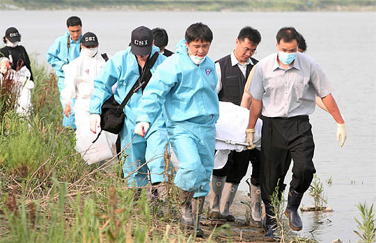 경찰은 사체가 발견된 부근이 사람과 차량의 왕래가 쉽지 않은 점으로 미뤄 김씨가 살해된 뒤 강물에 유기된 것으로 보고, 지난 1일 밤 11시40분께 방범용 폐쇄회로 TV에 찍힌 남자를 유력한 용의자로 보고 검거에 수사력을 집중하고 있다.