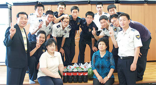 장순복 회장은 "지치기 쉬운 무더운 여름을 무사히 보낼 수 있도록 하기 위해 이번 행사를 마련했다"며 직접 준비해온 음식을 나누며 전·의경들의 사기를 북돋았다.