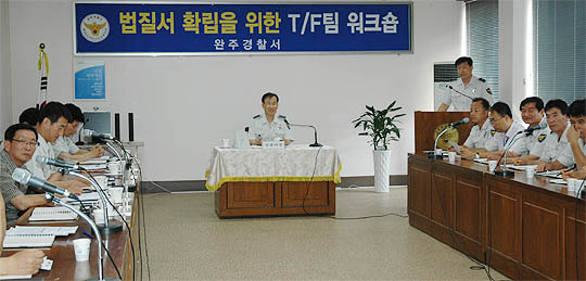 완주경찰서(서장 류선문)는 7일 오전 9시 2층 강당에서 각 과·계장, 지구대, 파출소장등 30명이 참석한 가운데 법질서 확립을 위한 T/F팀 워크숍을 열었다.