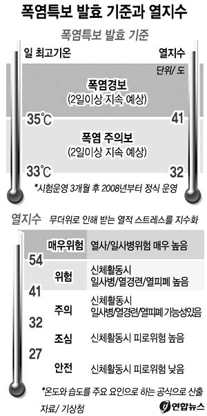 폭염특보 발효기준의 하나인 열지수는 날씨에 따른 인간의 열적 스트레스를 지수로 나타낸 것으로 온도와 습도 등을 반영해 산출된다.