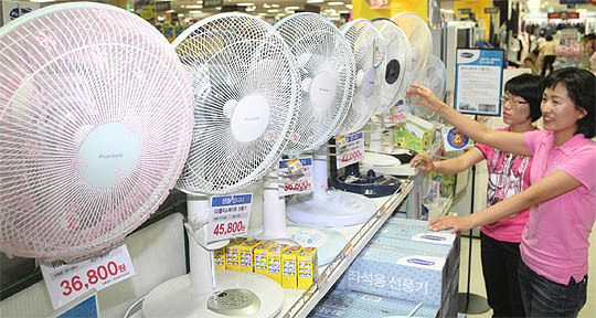 에어컨의 경우 지난 주보다 매출이 310% 신장했고 3∼4만원대에 팔리고 있는 선풍기도 170% 매출 증가를 기록하며 일시적 품절현상을 빚기도 했다.