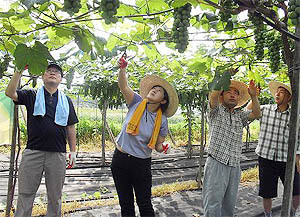 농협 무주군지부(지부장·오동환)와 구천동농협(조합장·황인홍)은 15일 설천면 하길산마을 이태일씨 포도농장을 찾아 포도 순 따기 일손돕기를 전개했다.