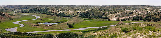 시린꺼러 초원에 들어서니 동서로 300km 남북으로 50∼100km에 걸쳐 있다는 쿤산다크 사지가 펼쳐진다. 보통 사막으로 알려져 있으나 비가 내리는 지역이어서 사지라 부르는 것이 정확한 표현이다. 바람에 날린 흰모래 언덕이 황폐한 사막처럼 보이다가도 작은 구릉 사이의 키 작은 나무가 드믄 드문 서있고 모래를 움켜쥔 떨러스(식물)가 올록볼록 푸르게 솟은 모습은 아프리카 초원처럼 보인다. 낮은 지대에 야트막한 물웅덩이가 길게 습지를 형성한 곳은 갈대나 줄 등의 수생식물이 무성하게 자라고 있다. 보는 위치에 따라 느낌이 다르고 경관이 다르다. 운이 좋아 사막과 나무, 그리고 초원과 습지를 한꺼번에 보게 되면 탄성이 절로 나온다. 흰모래 언덕을 넘어가고 심은 충동이 인다. 쿤산다크의 사지가 더욱 아름답고 생물종다양성이 높은 이유는 풍부한 물 때문이다.