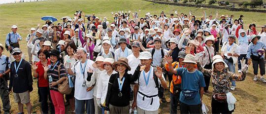 제주도가 바가지 없애기 등 뼈를 깎는 자구 노력으로 관광객을 늘리고 있다.사진은 제주도에서 열린 한·일 걷기대회의 참가자들. (desk@jjan.kr)