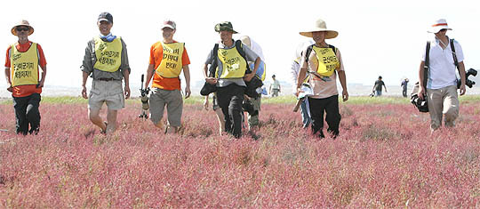 도내 시민사회단체들이 지난 1일 새만금 지역에 철조망을 설치한 미군에 항의하기 위해 도보순례를 실시하고 즉각적인 철거를 촉구했다.