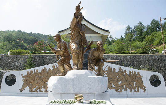 총 3억여원의 사업비가 투입된 동상에는 당시 일본군과의 진안 전투에서 전사한 28명의 의병 활동상과 이석용 의병장 등의 동상이 새겨졌다.