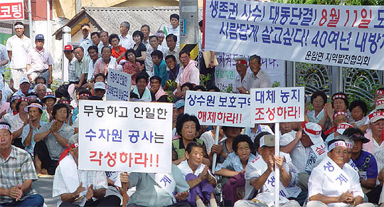 이날 주민들이 집회를 벌인 이유는 수몰지 127세대와 제내지 108세대 등 235세대에 대한 이주대책이 확정되지 않았기 때문이다.