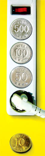한달 전기료가 3만원이 넘은 적이 거의 없는 유주리씨(49·전주 삼천동). 7∼8년 전부터 스위치를 끄면 플러그를 뽑는 것과 같은 효과를 얻을 수 있는 절전형 멀티탭을 사용하고 있다. 그는 "백열등도 전구형 형광등으로 교체해 전력소모량이 뚝 떨어졌고, 전구 수명도 훨씬 길어졌다"고 말했다. 화장실 샤워꼭지도 절수용이다.