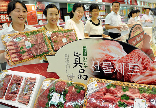 또 미국산 수입쇠고기 영향으로 한우매출 감소가 예상됨에 따라 최고급형과 실속형으로 양분화해 최고급형의 경우 3kg(한우암소 등심+갈비) 기준 25만원, 실속형은 1.5kg(불고기+국거리) 기준 5만원대 상품을 마련했다.