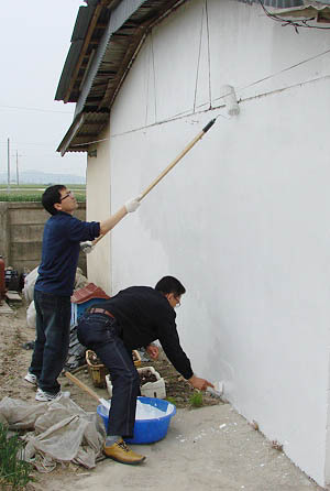 파란세상 만들기 내 참사랑팀은 2일 김제 금산면 봉은마을을 찾아 지붕 처마 보수공사와 벽지도배, 장판교체 작업에 구슬땀을 흘리며 봉사활동을 전개, 마을 주민들로 부터 큰 호평을 받았다.