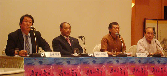 2일 전주코아리베라호텔에서 열린 소리축제 공식초청작 창작오페라 '흥부와 놀부' 제작발표회에서 조장남 단장이 작품에 대해 설명하고 있다. (desk@jjan.kr)