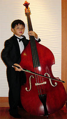 곽진우(9·우전초)군은 전북 어린이 교향악단 더블베이스 연주자다.