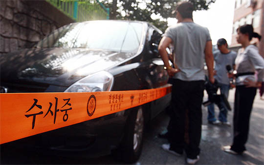 8일 오전 서울 노원구 하계동의 주택가 골목 차안에서 숨진채 발견된 탤런트 안재환이 타고 있던 차량. (desk@jjan.kr)