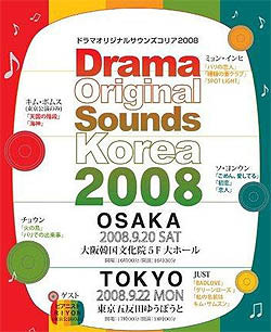 인기 한류 드라마 O.S.T를 한자리에서 소개하는 콘서트 '드라마 오리지널 사운드 코리아(Drama Original Sounds Korea) 2008'이 한국문화콘텐츠진흥원(원장 고석만) 주최로 20일 오사카의 한국문화원홀, 22일 도쿄의 유포토홀에서 개최된다.