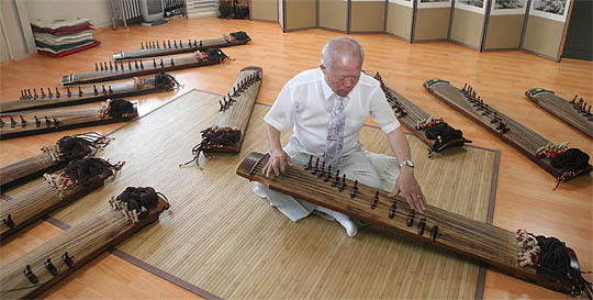 10일 도립국악원에서 만난 강정열 교수가 가야금을 연주하고 있다. (desk@jjan.kr)