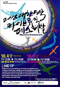 ㈔라이브음악문화발전협회가 주최하는 이번 행사는 10월4일 낮 12시~밤 10시 마포구 성산동 월드컵경기장 평화의 공원 내 특설무대에서 '메인 이벤트', 10월5일 오후 5시~밤 10시 서울 홍대와 신촌 라이브클럽 6곳에서 '프리 클럽 페스트'로 꾸며진다.