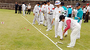 23일 장수 공설운동장에서 열린 제5회 자치단체 체육대회에서 게이트볼 경기가 진행되고 있다. (desk@jjan.kr)