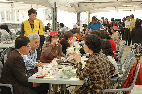 제10회 지평선축제가 열리고 있는 김제 벽골제에 각 읍면동별로 마련된 먹거리 부스 및 지평선쌀, 총체보리한우 매장이 관광객들로 부터 큰 인기몰이를 하고 있다.